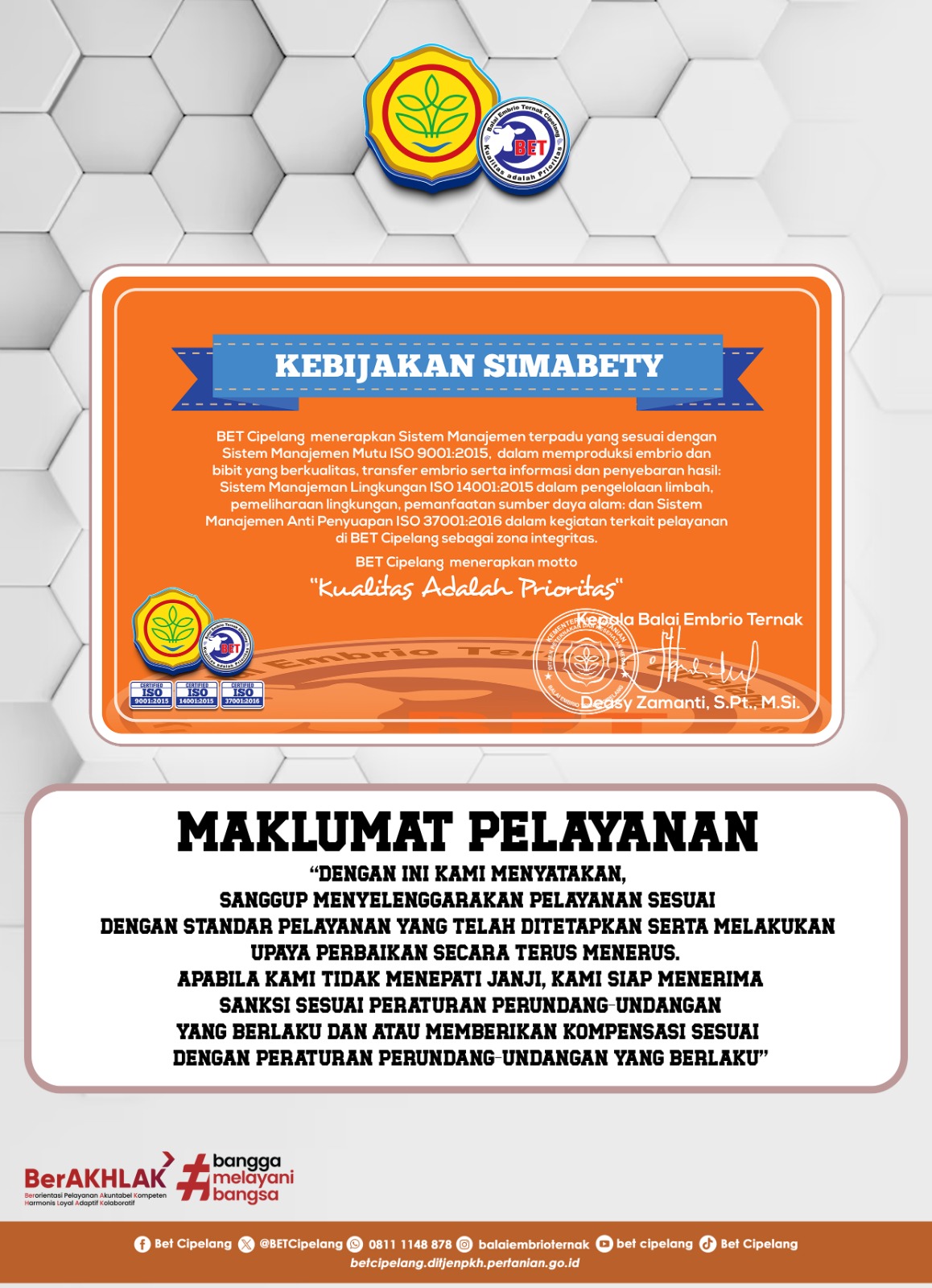 Beranda > Kebijakan Mutu Dan Maklumat Layanan Kebijakan Mutu Dan Maklumat Layanan 05 Juni 2017 Dibaca : 131 kali